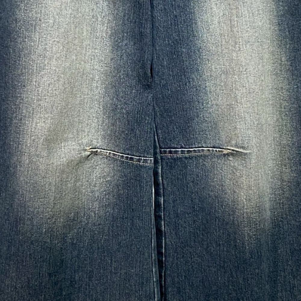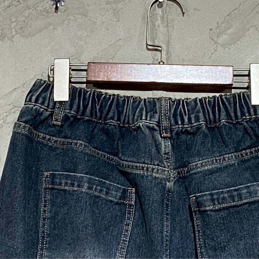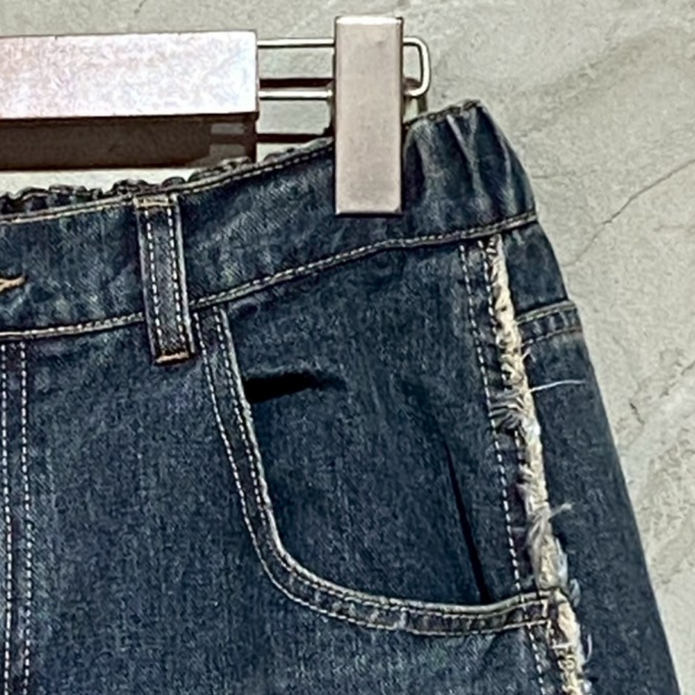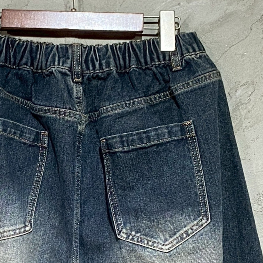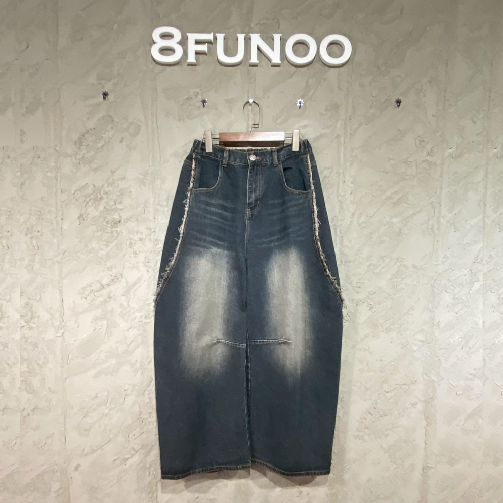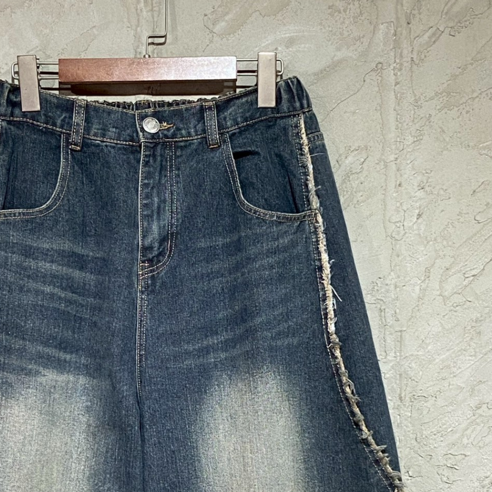 • 復古刷色寬鬆破壞鬚邊牛仔褲