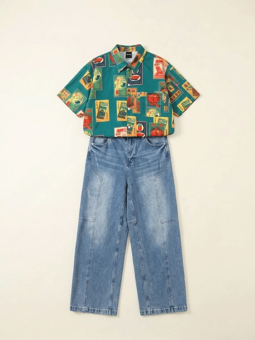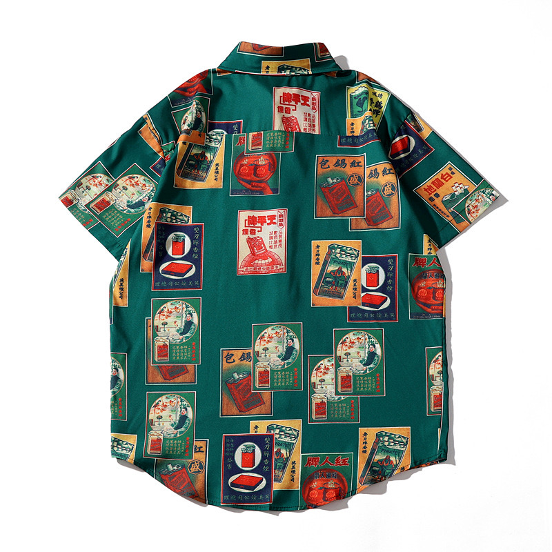 老煙盒滿版插畫口袋襯衫