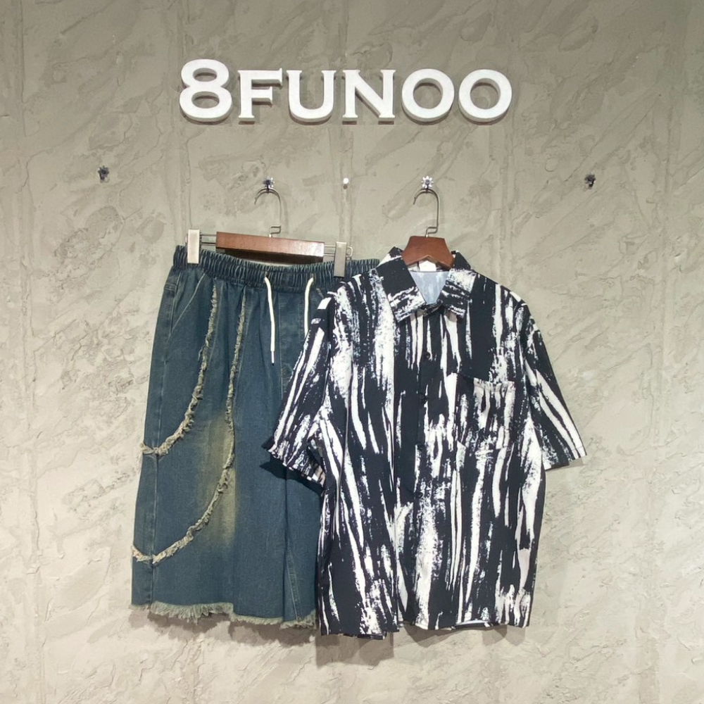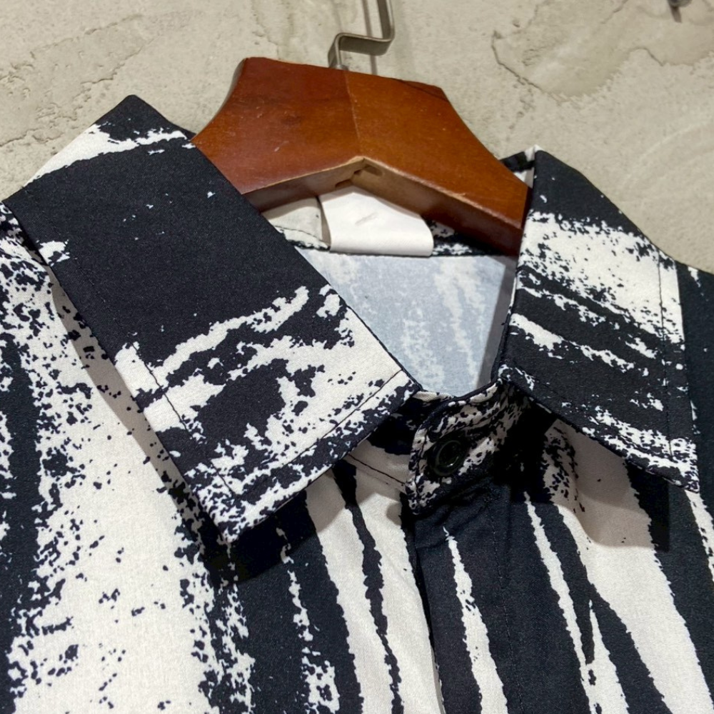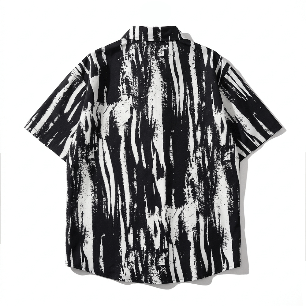 韓系黑白刷漆感印花短袖襯衫