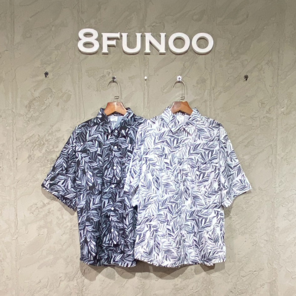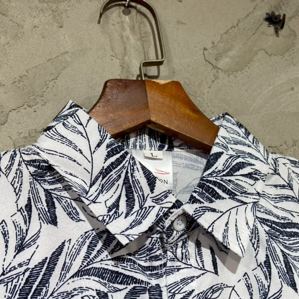 • 復古樹葉印花短袖襯衫
