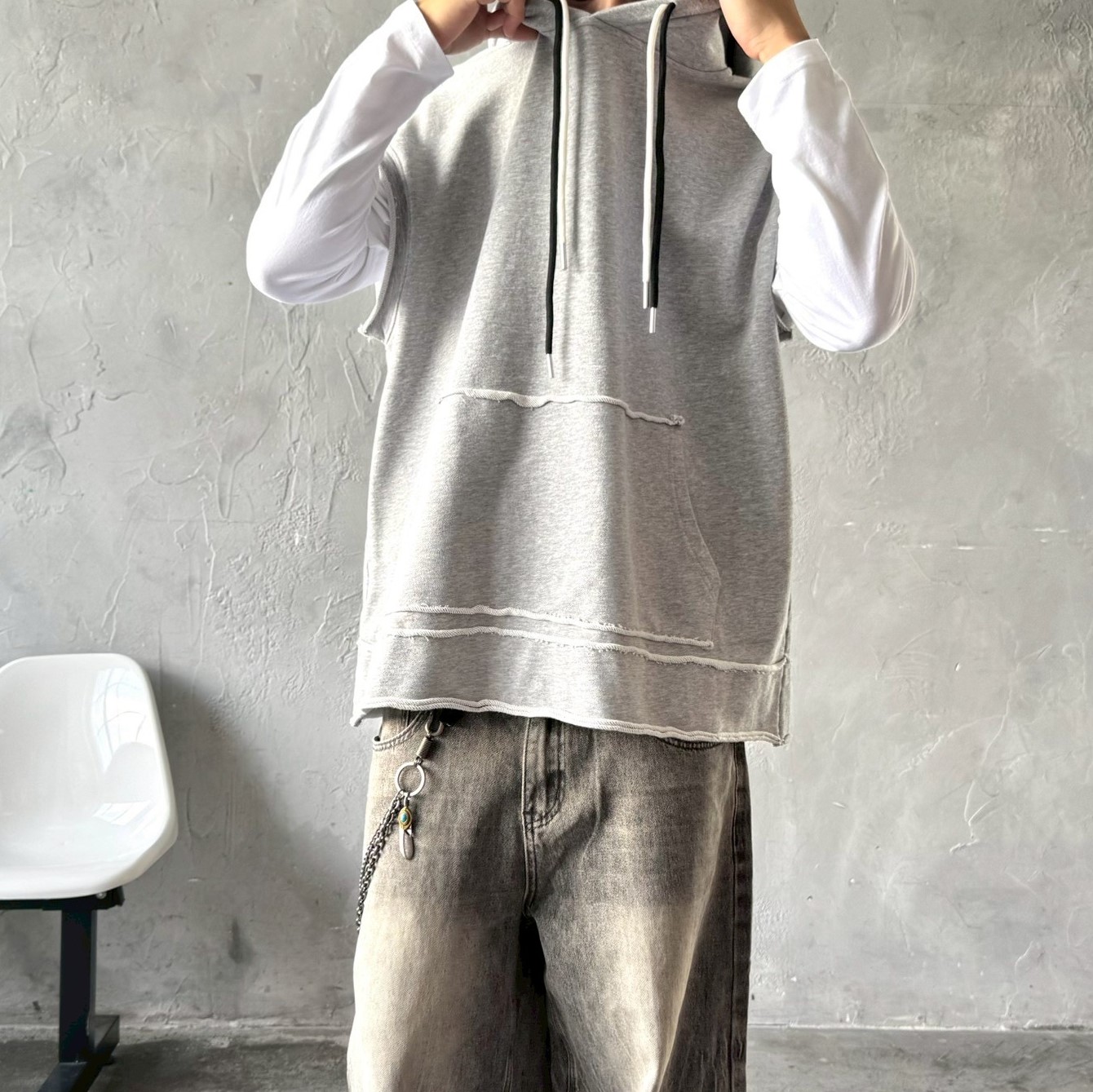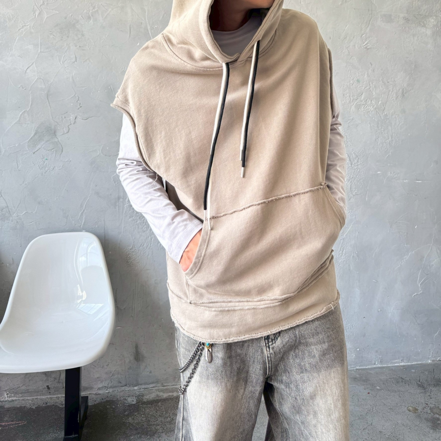 【預購】個性反車線連帽背心