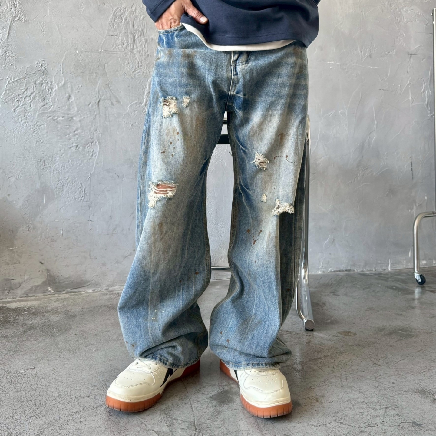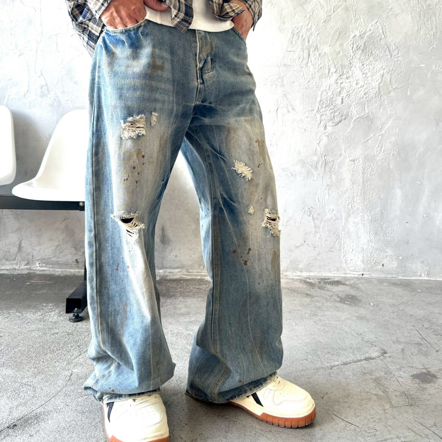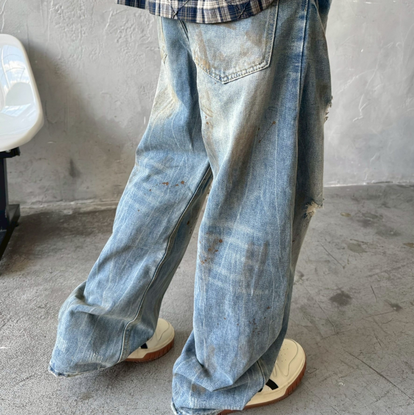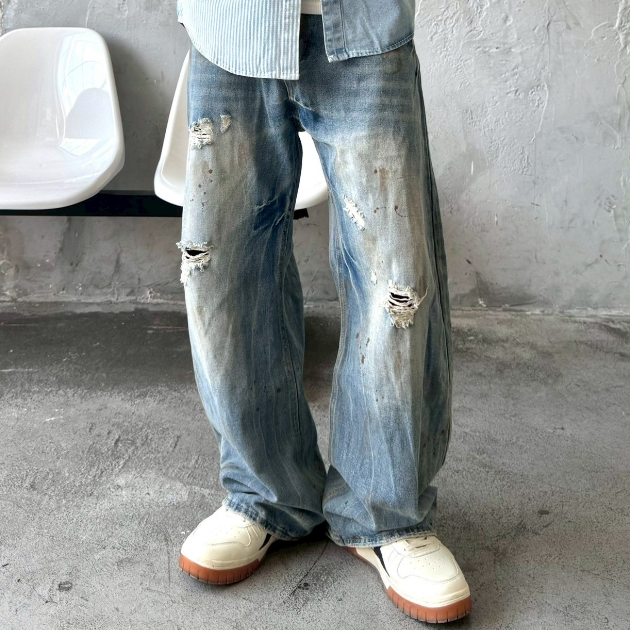 【預購】美式復古油漆潑墨牛仔褲