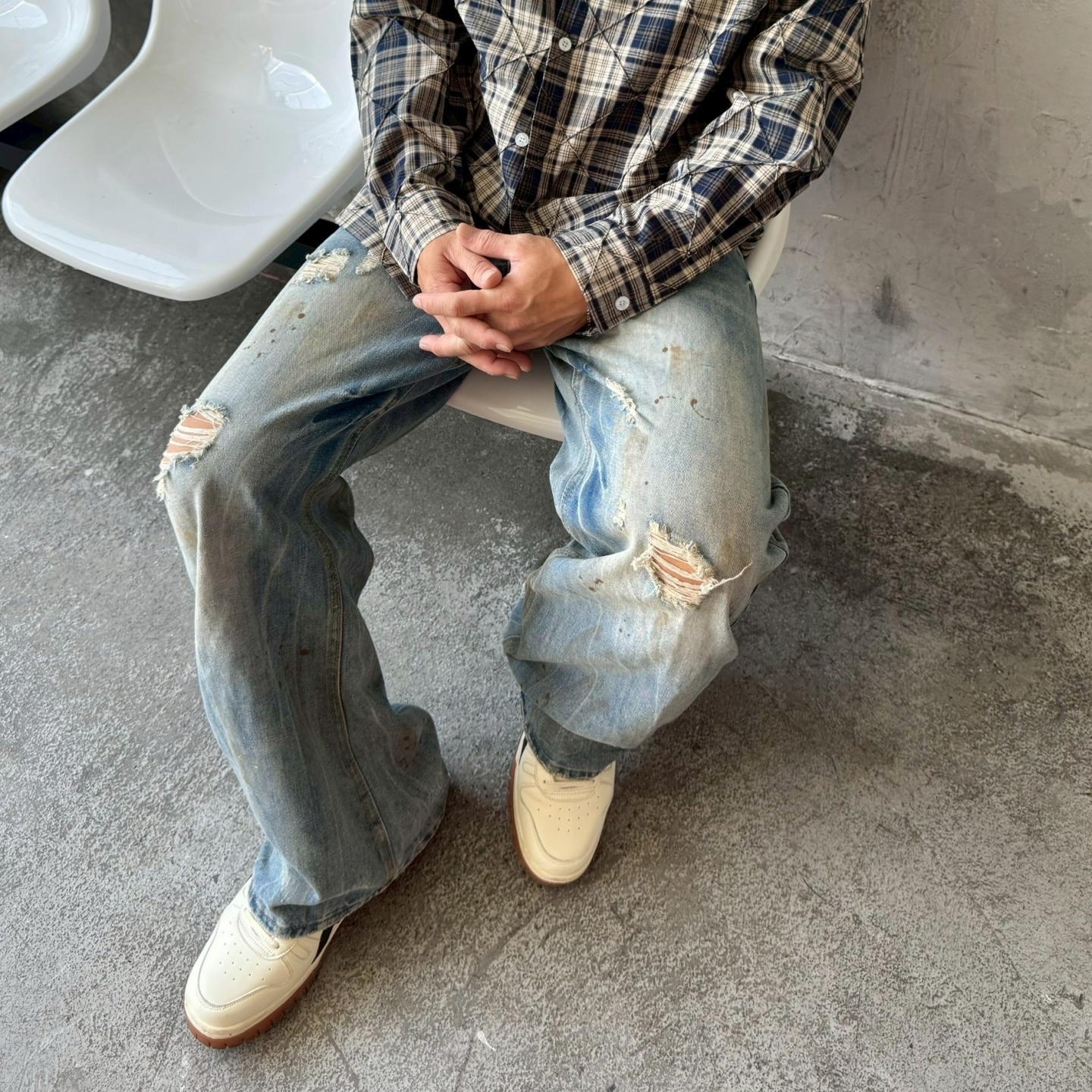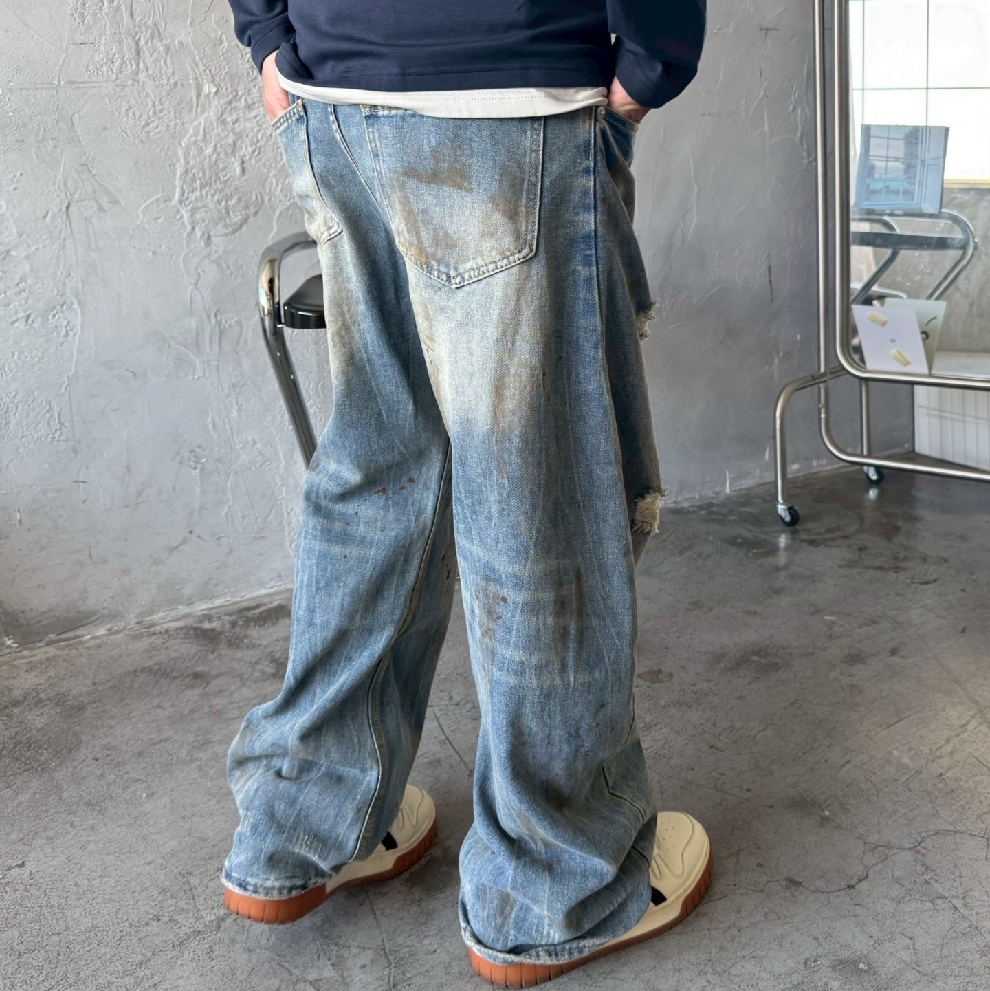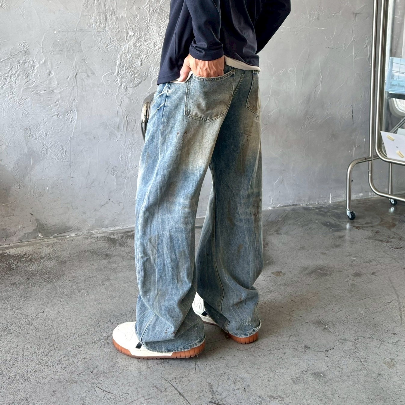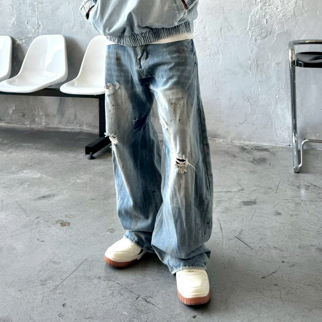 【預購】美式復古油漆潑墨牛仔褲