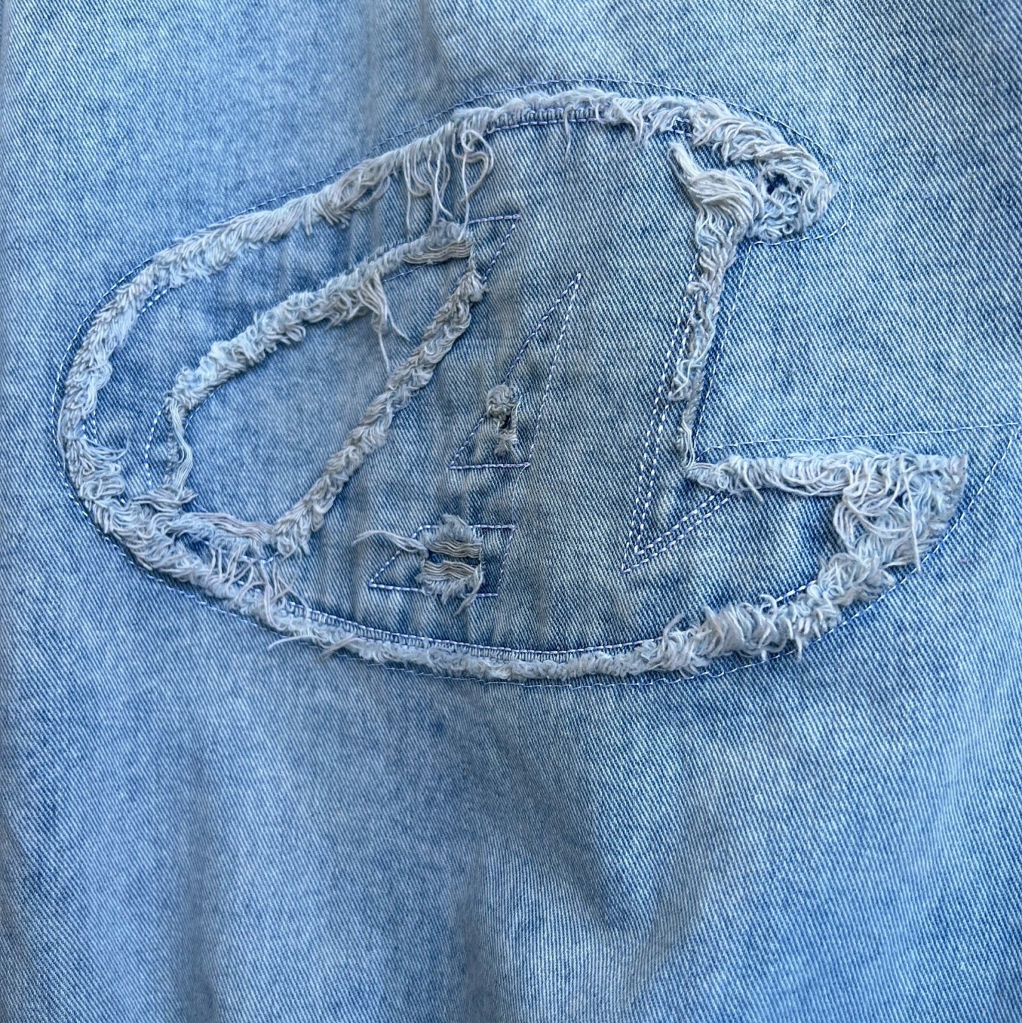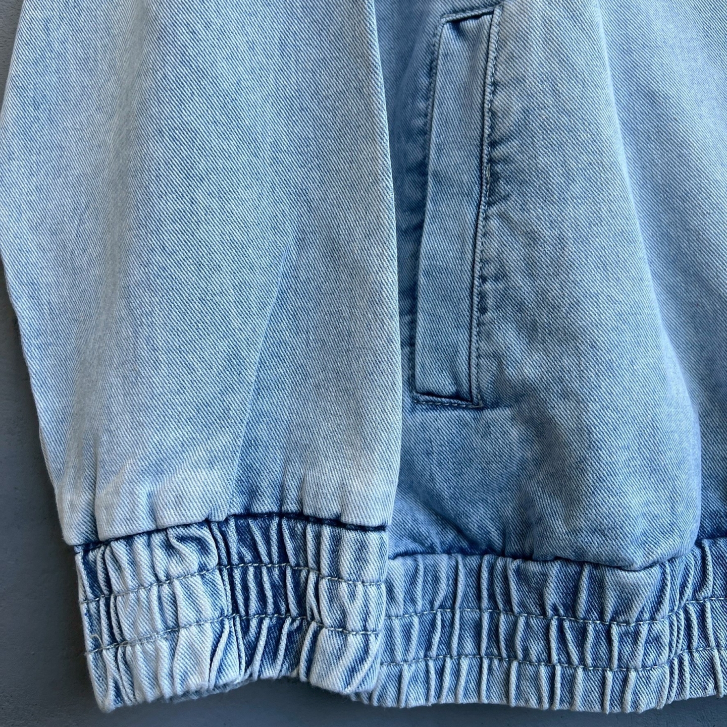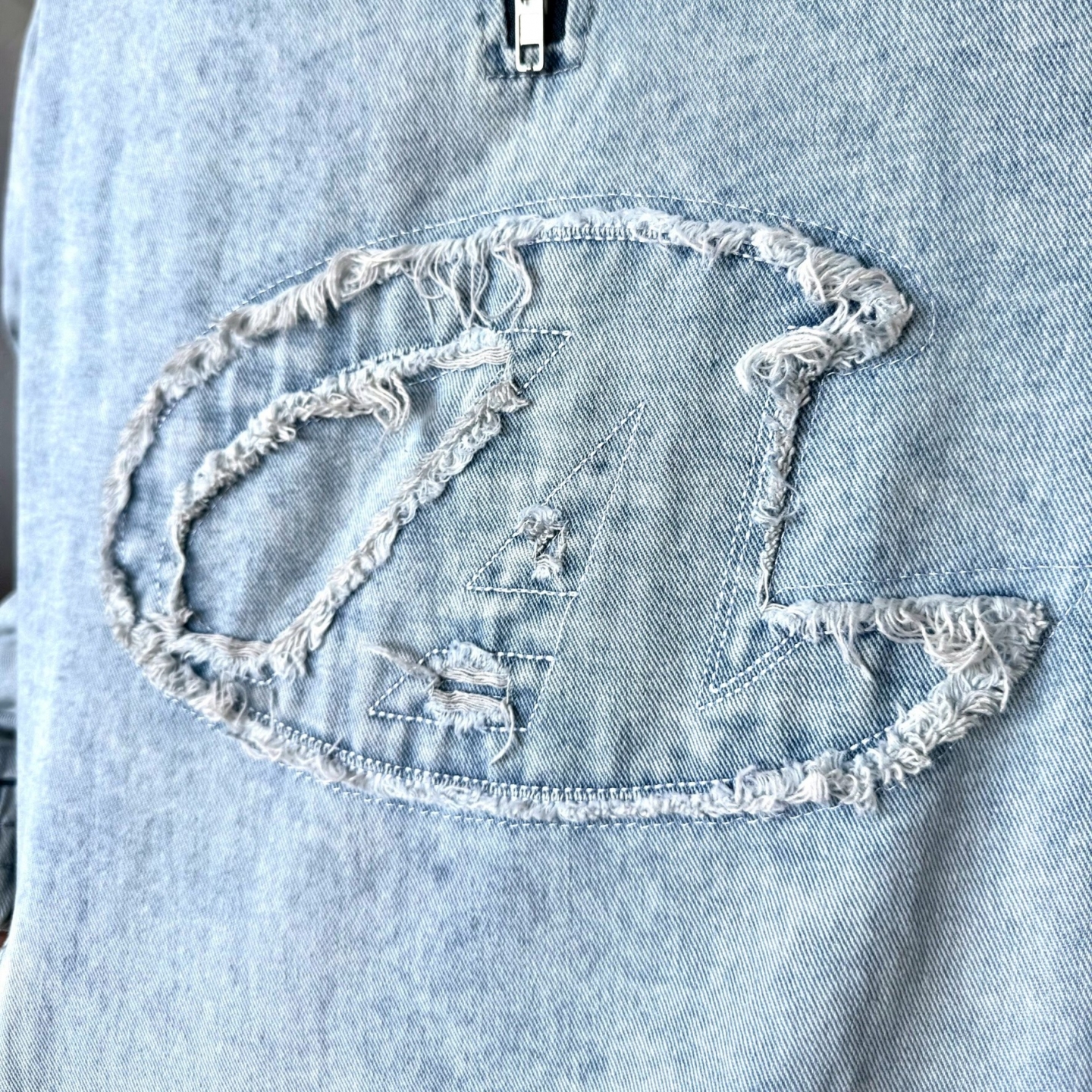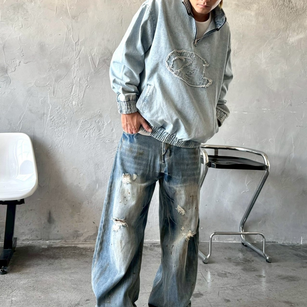 【預購】水洗牛仔半拉鍊貼布寬鬆套頭衫