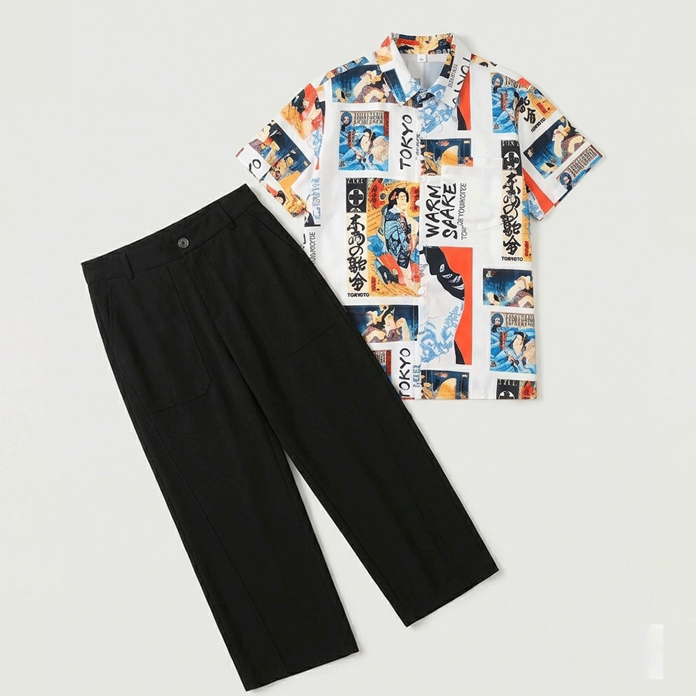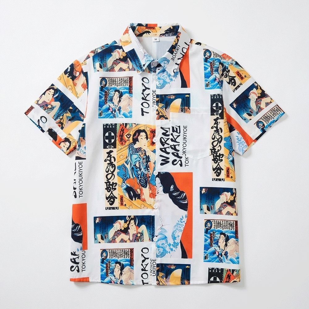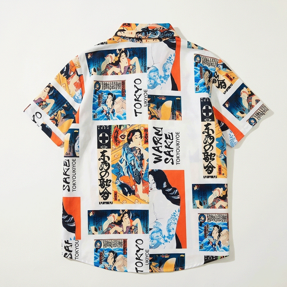日本刺青藝妓插畫短袖襯衫