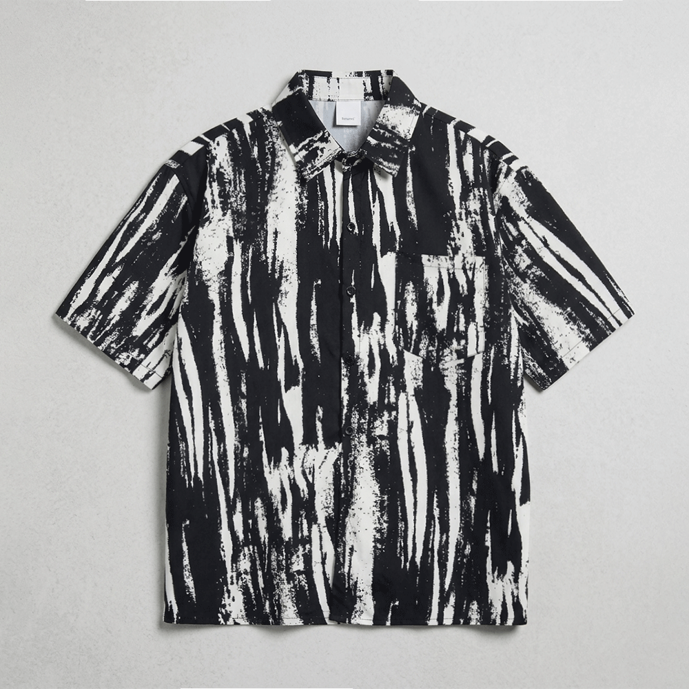 韓系黑白刷漆感印花短袖襯衫